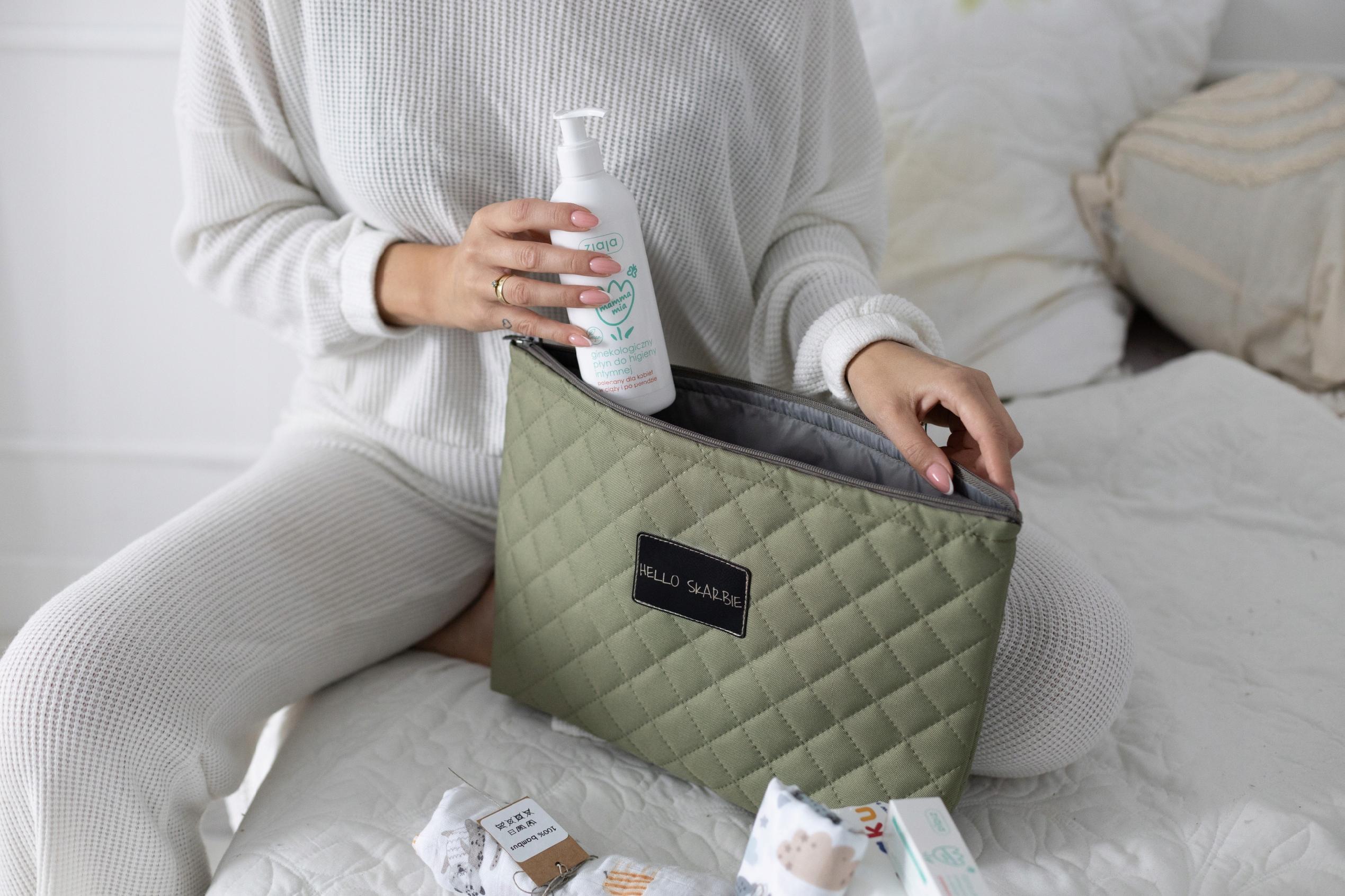 Kosmetyczka do szpitala oliwkowa dla mam dziecka poród wyprawka