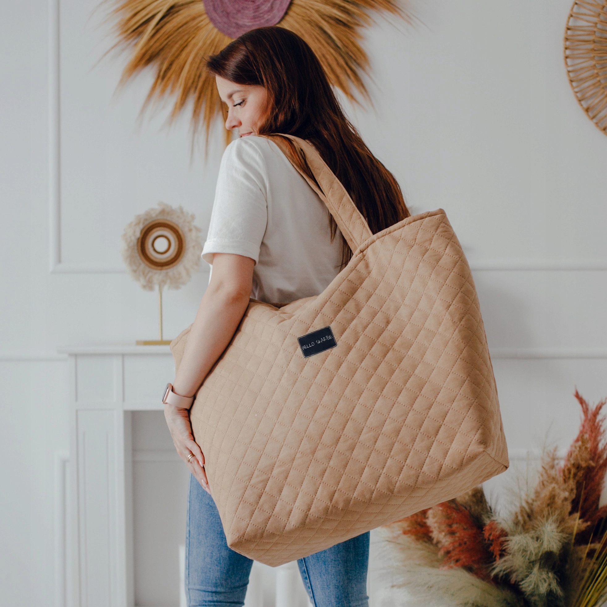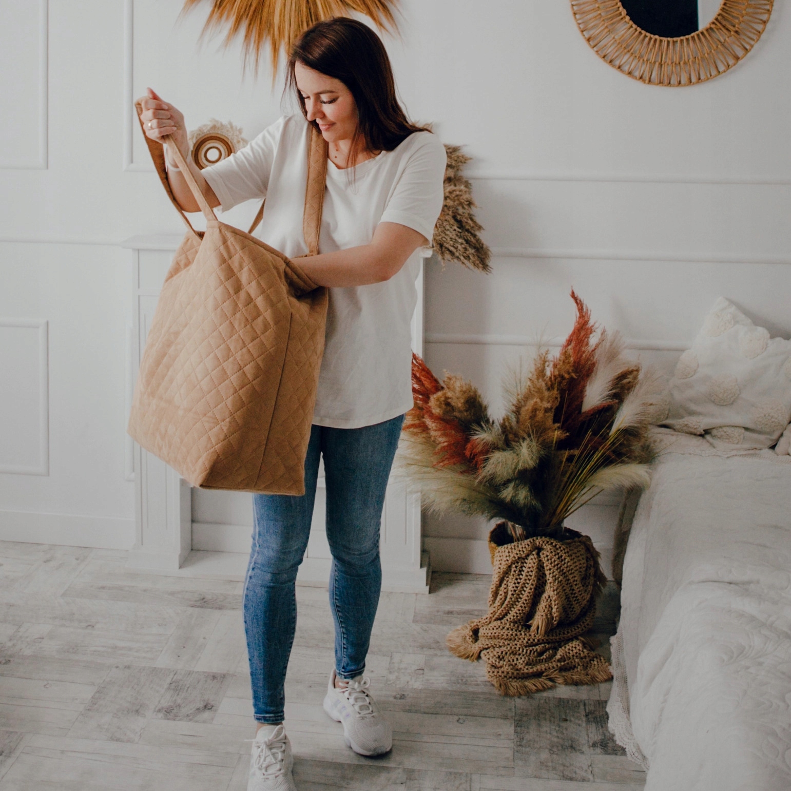 Pojemna torba do szpitala beżowa dla mamy wyprawka poród rozm. XL